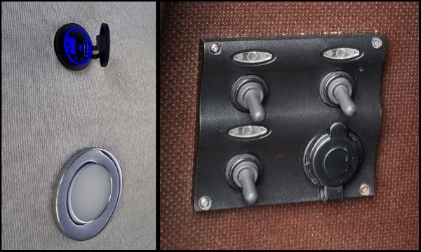 Das Lichtsystem und die USB-Dosen sind im Fahrzeughimmel untergebracht. Die Lichtschalter und Zigarettenanzünder Steckdosen können vom linken Seitenkasten bedient werden. Sämtliche Verbaucherstränge sind einzeln abgesichert.