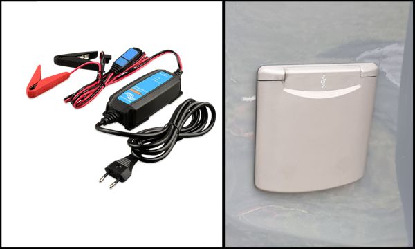 Über den Landstrom-Anschluss und dem Batterie-Ladegerät wird die Aufbau-Batterie geladen.
